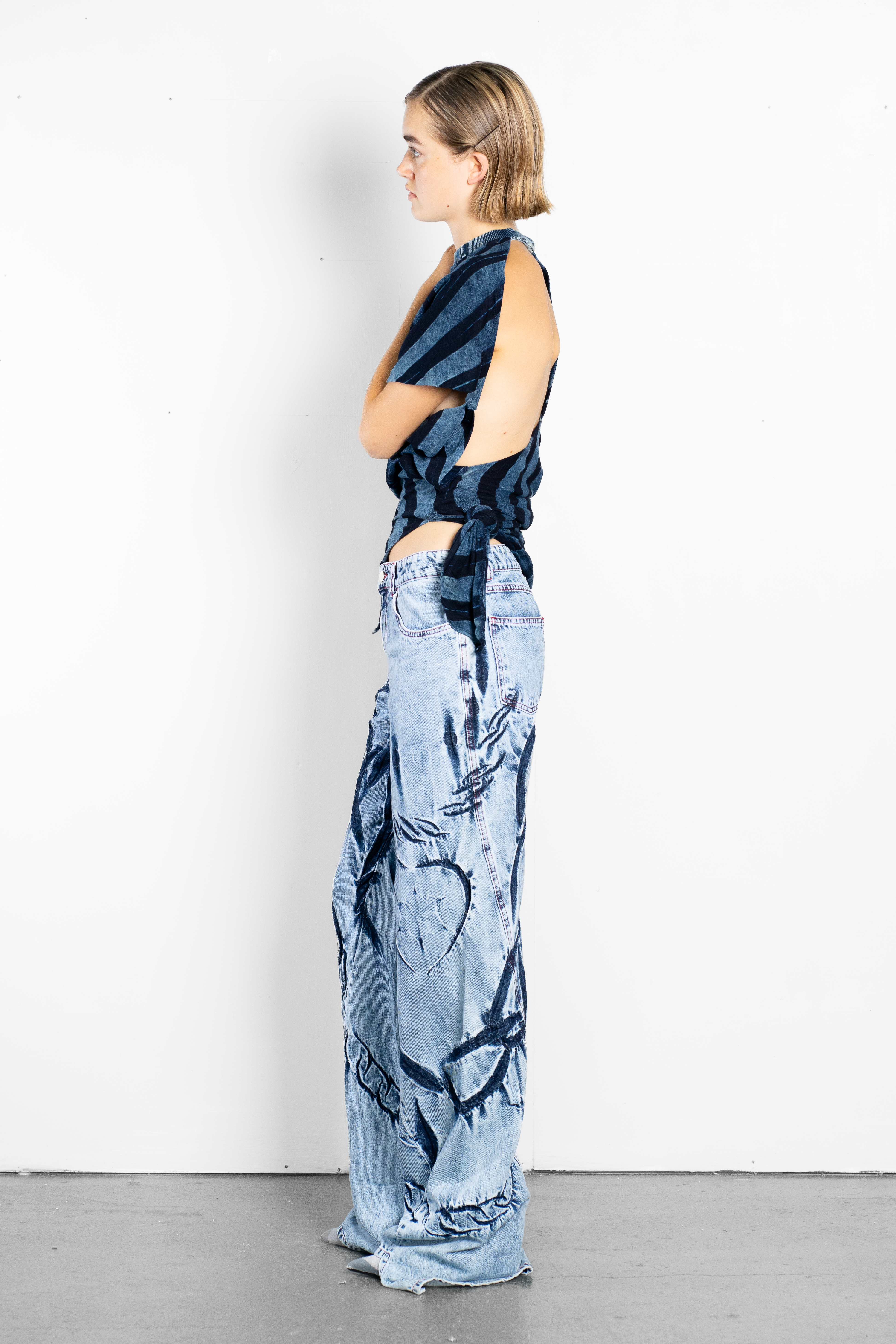 Indigo stripe and bead pattern. Asymmetric hem and side knot