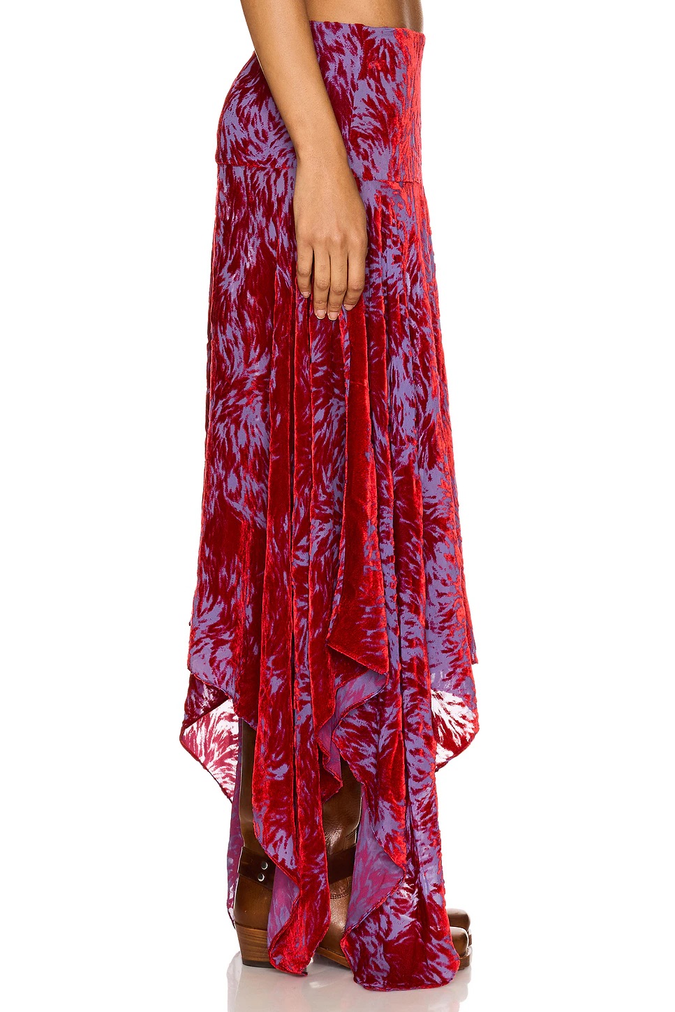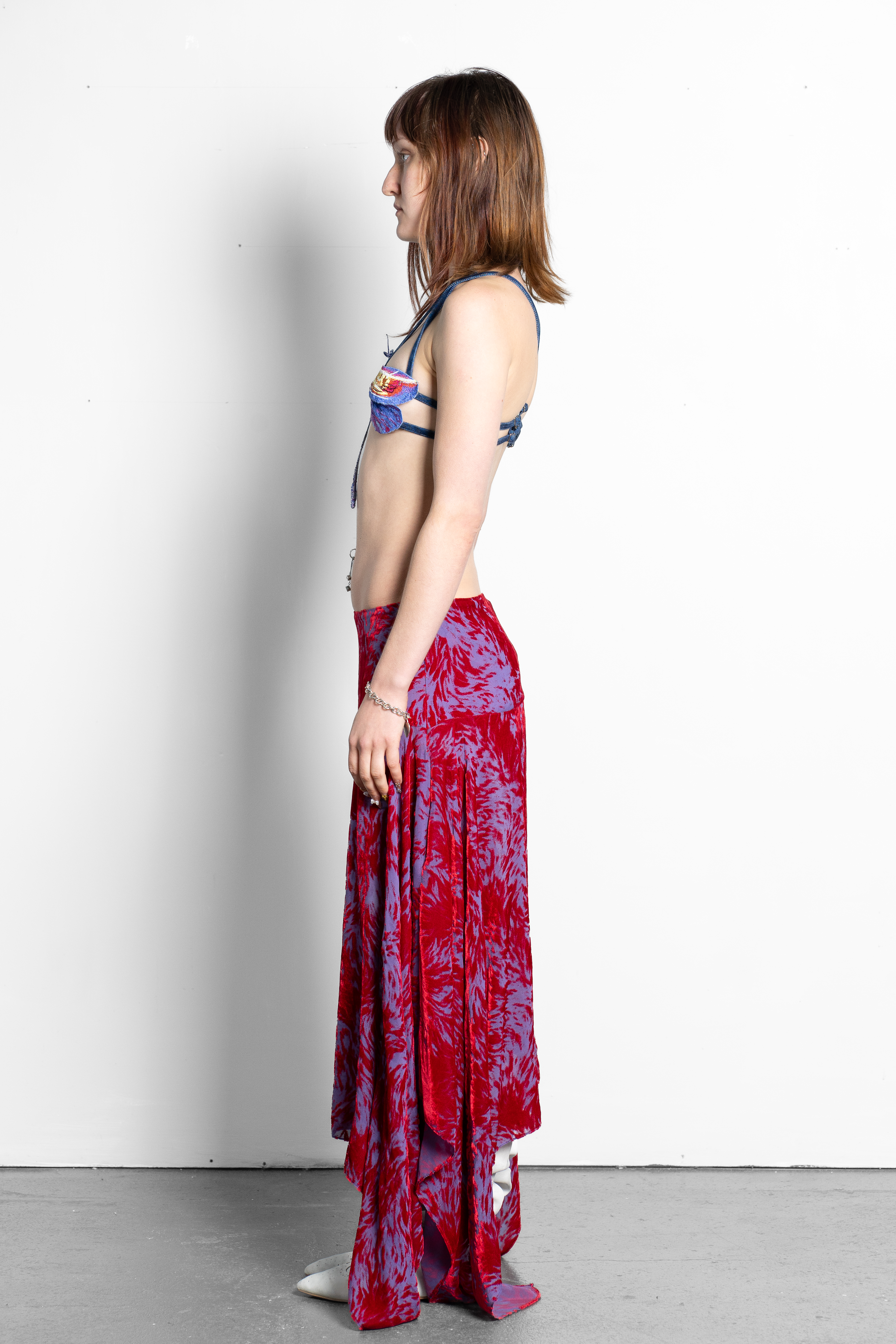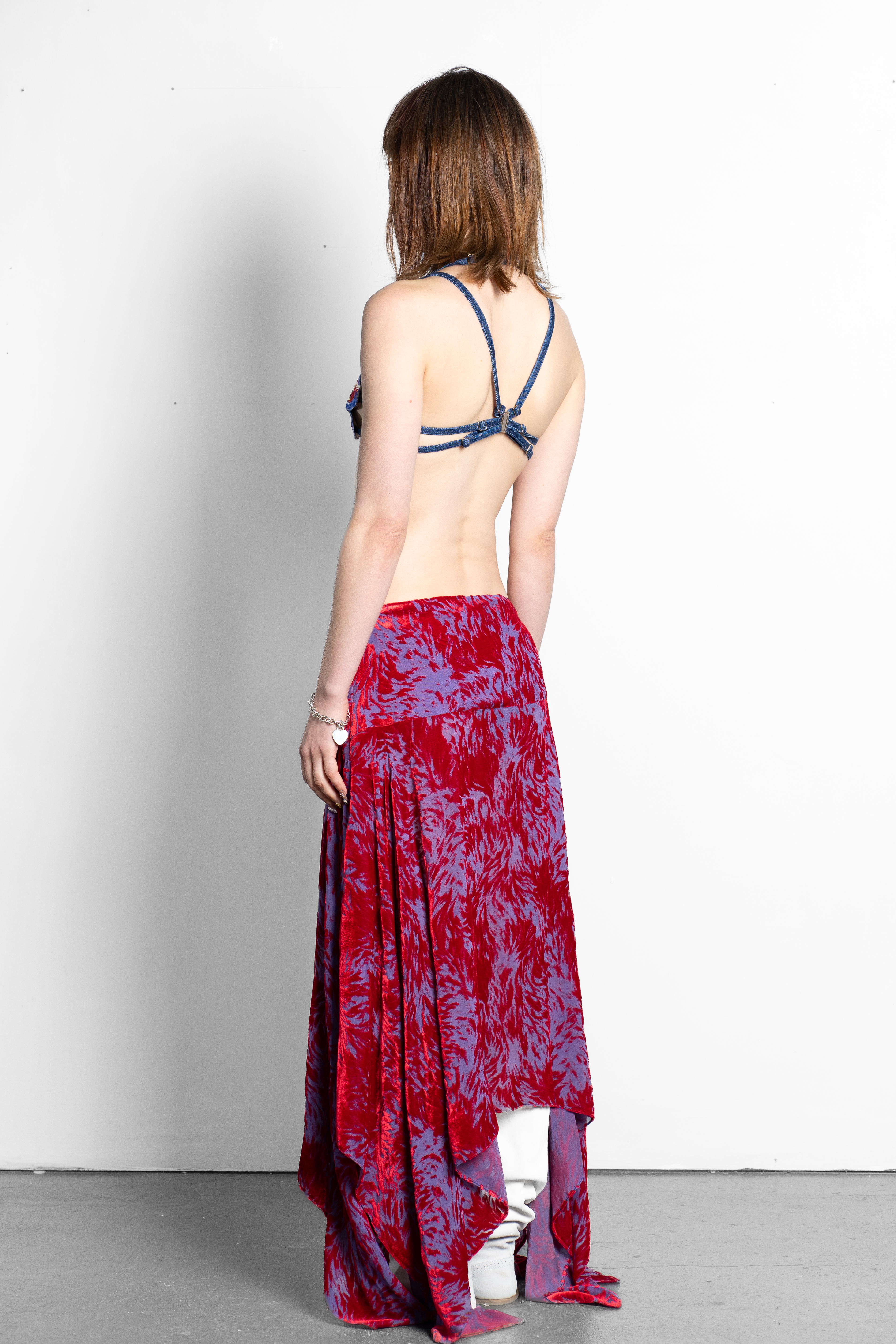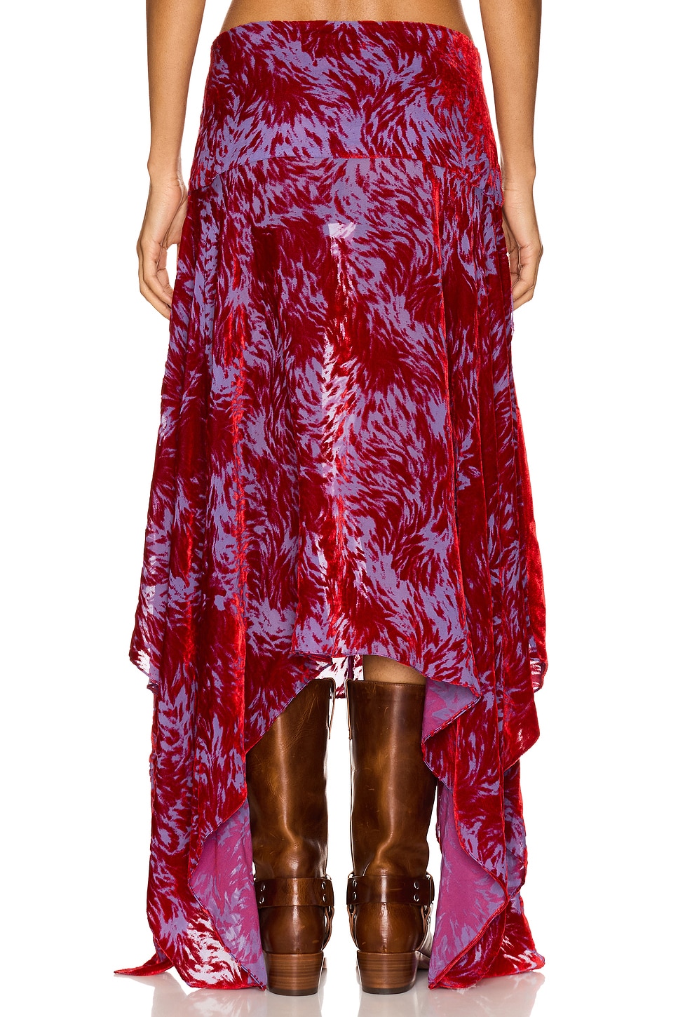 Semi-sheer viscose- and silk-blend velvet skirt. Trompe l'œil “fur” pattern printed throughout.