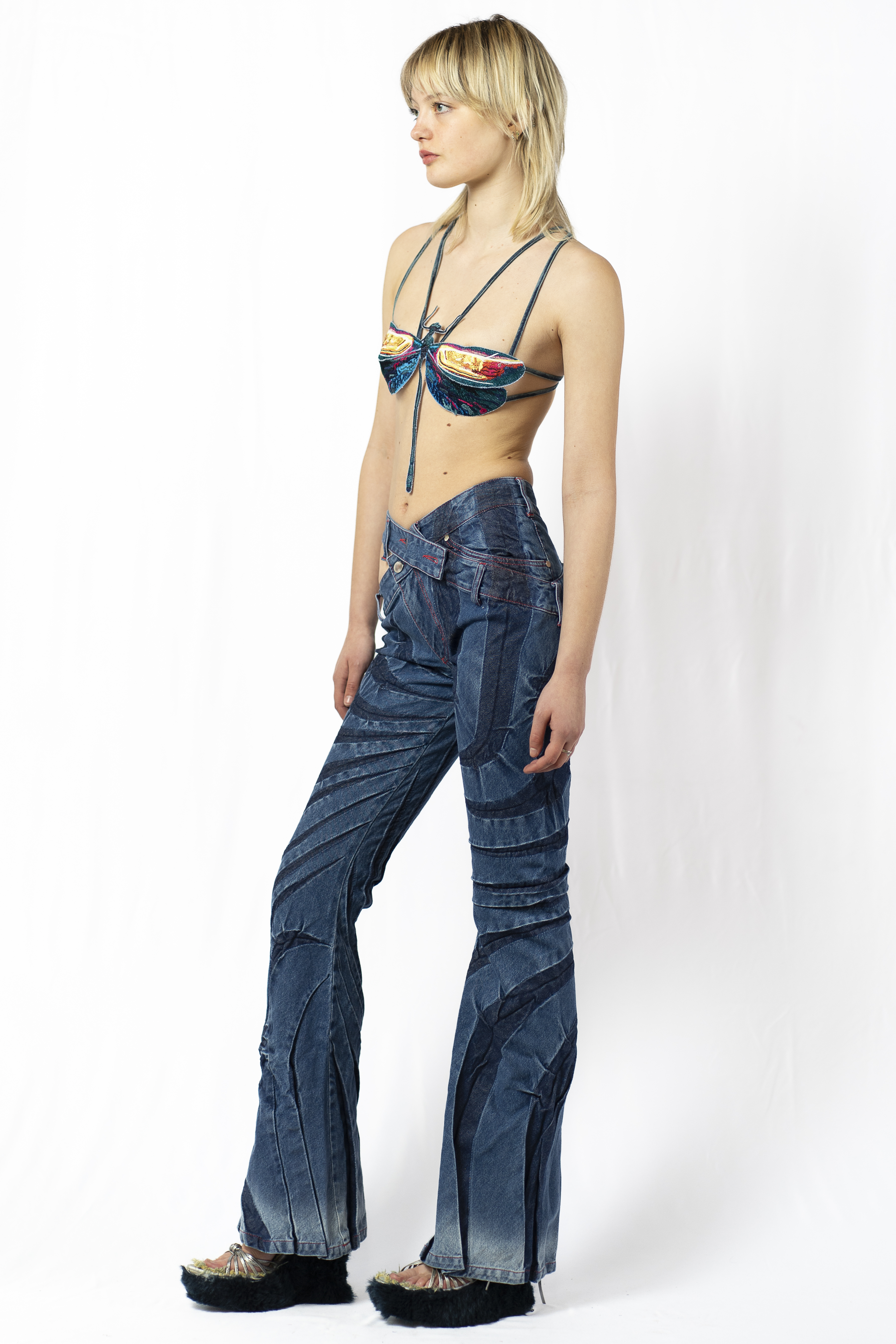 INDIGO FADE TRIBAL BIAS CUT JEANS