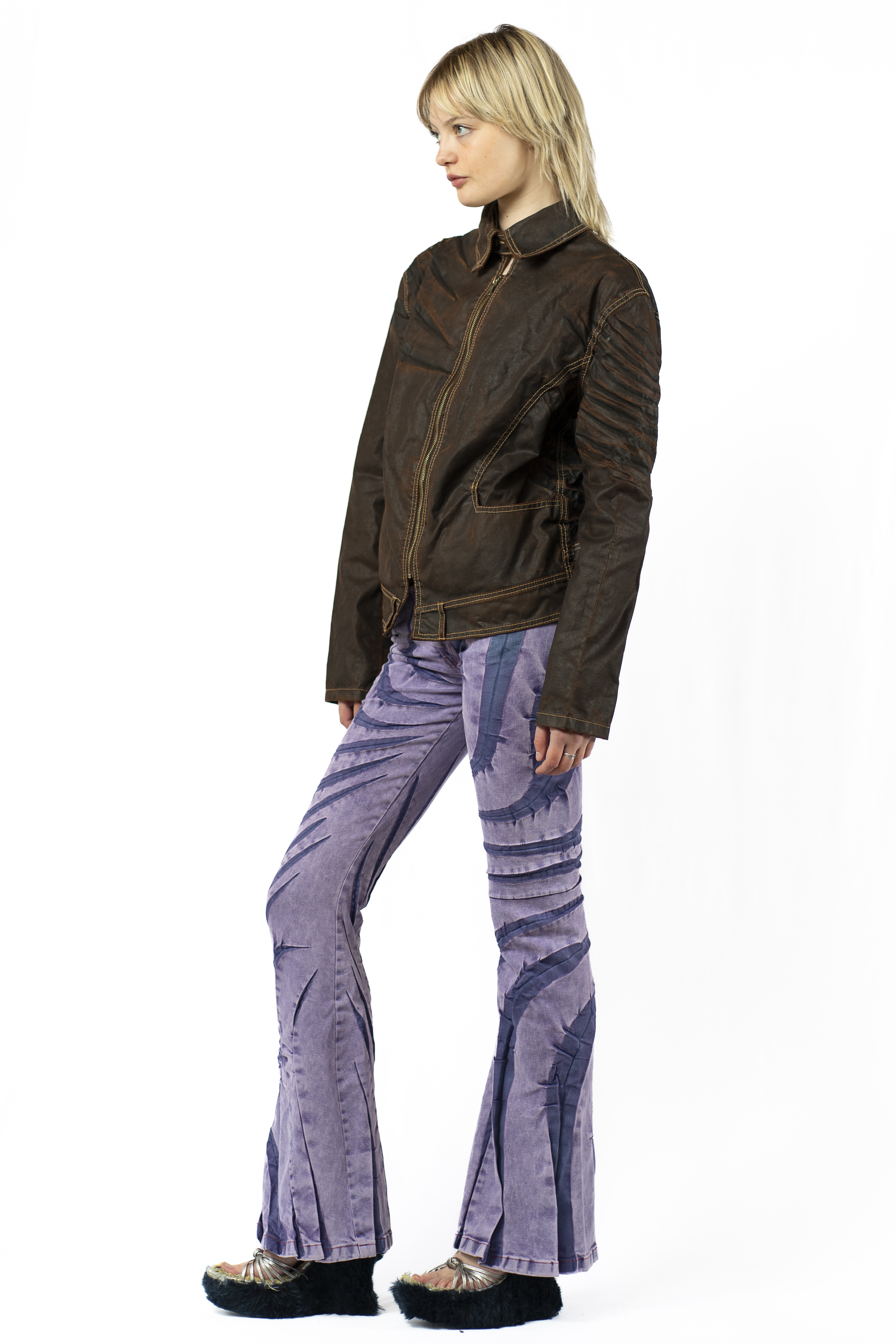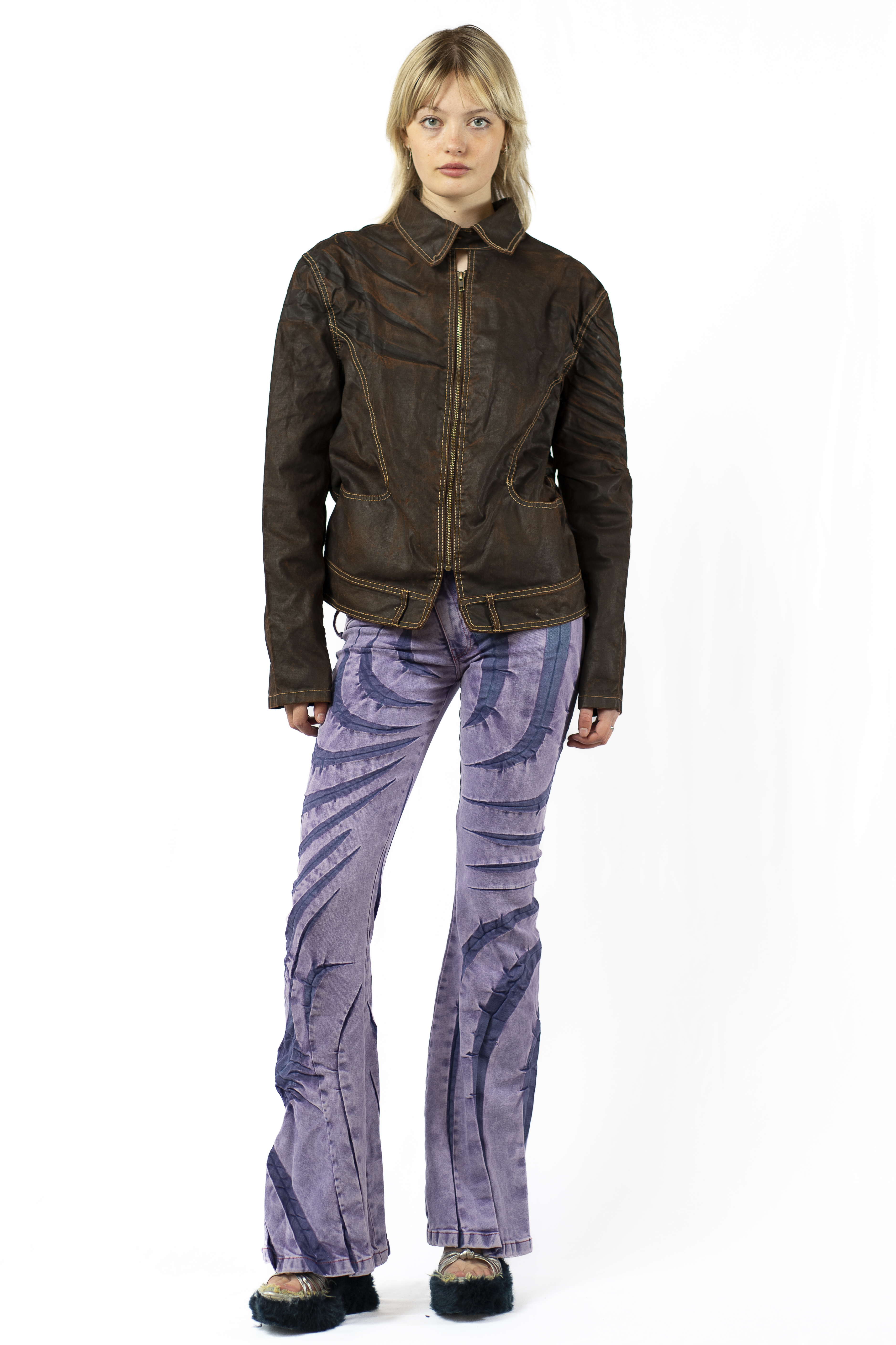 Unisex Coated Oeko-Tex®-certified non-stretch cotton and recycled polyester-blend denim jacket. Fading and creasing throughout.