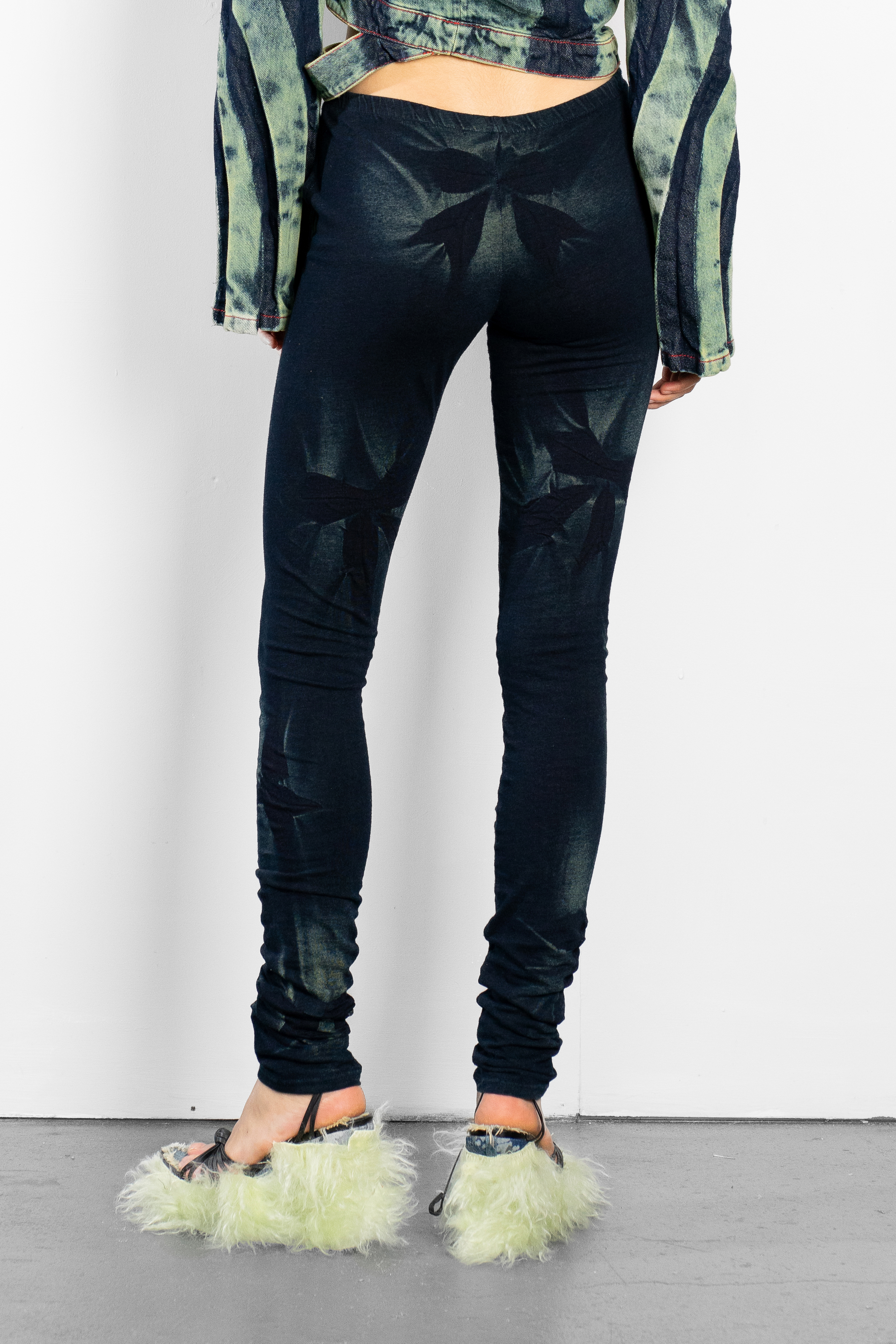 Stretch jersey leggings. Twisted front detail and bow pattern.