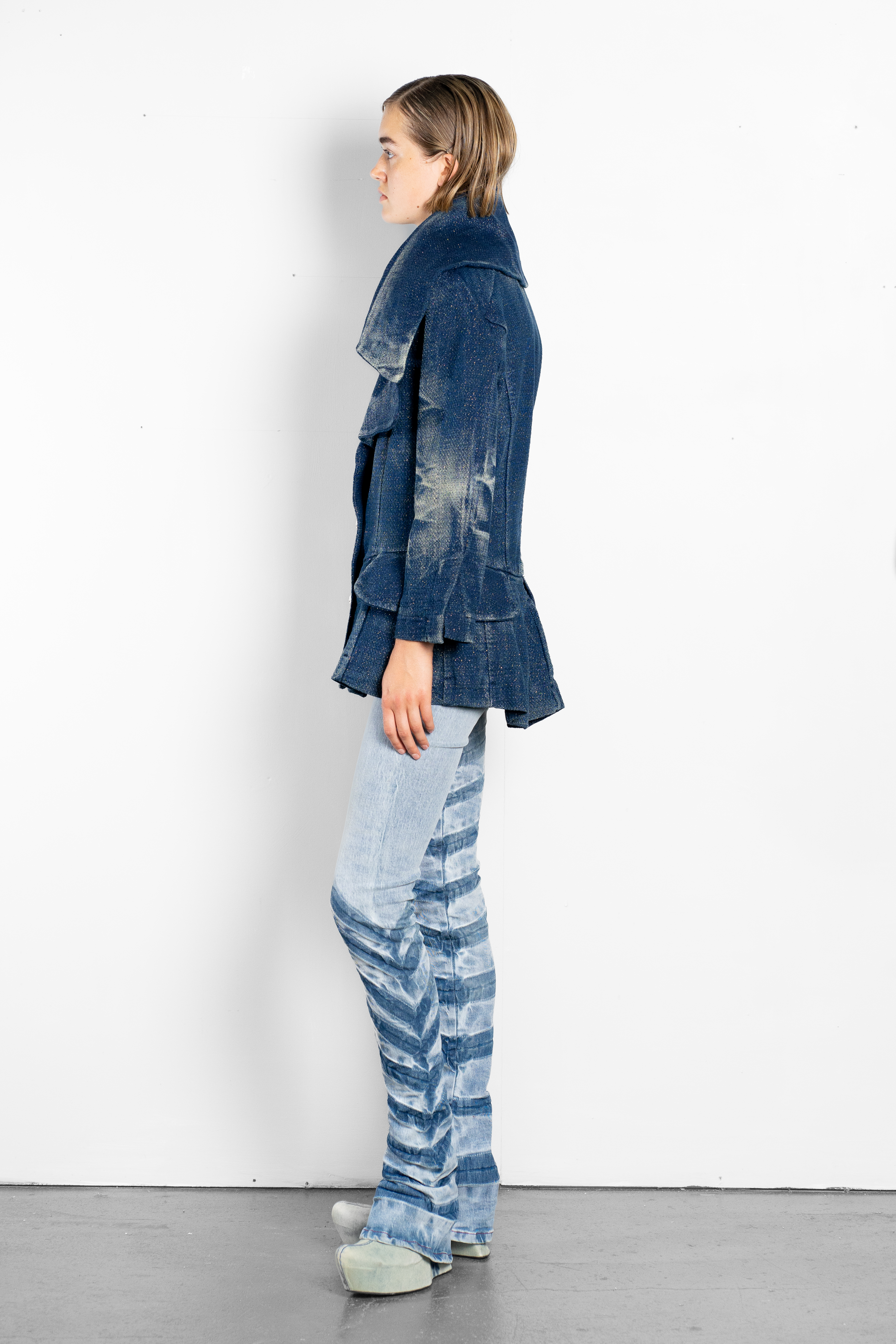 Tweed woven with Lurex. Double-breasted tailored blazer with an oversized, exaggerated layered collar.